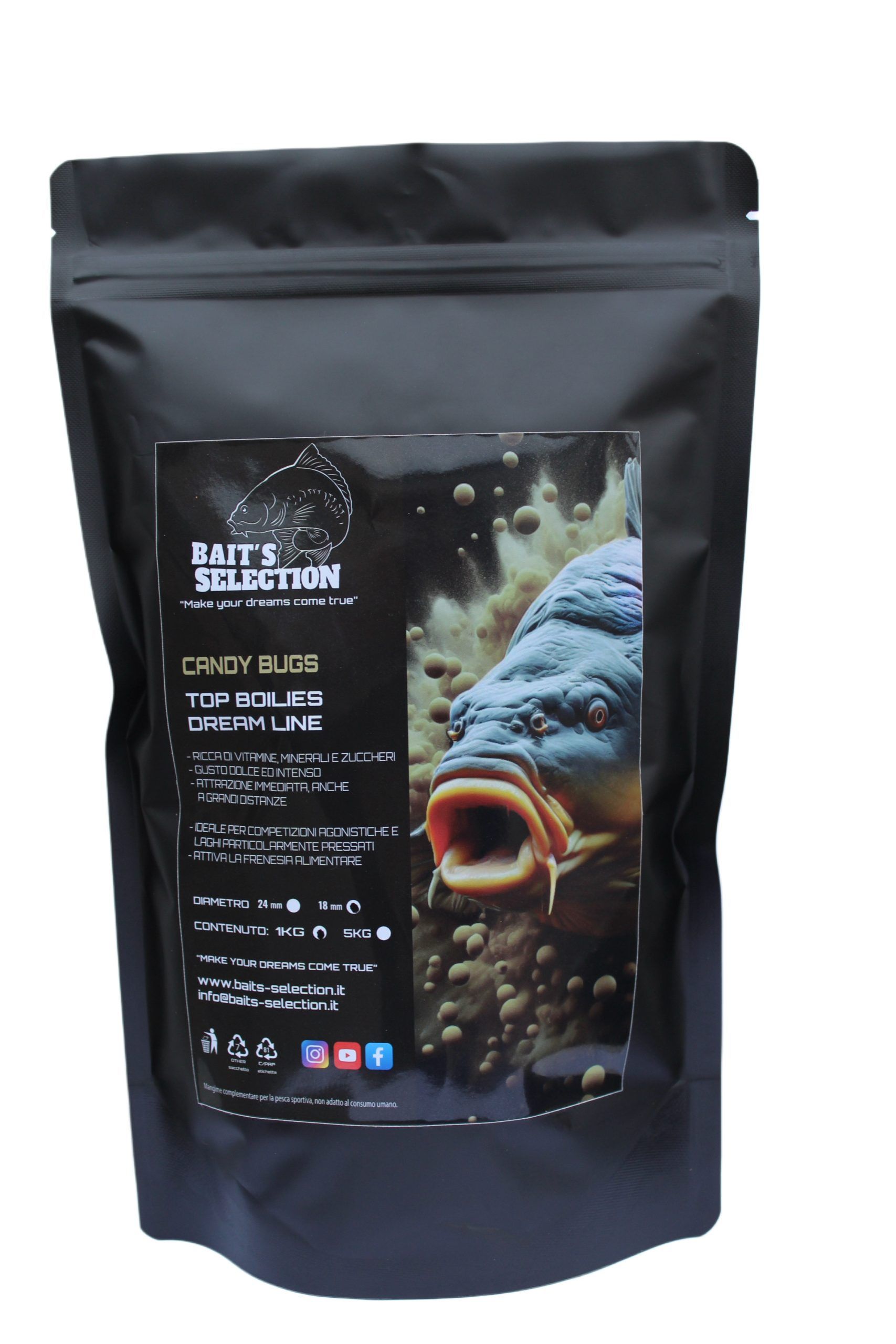La Boilies Dream Line Candy Bugs, grazie ai suoi ingredienti ad elevato potenziale energetico e zuccherino, è una boilie che cattura ovunque ed in qualsiasi situazione. La forte attrazione, il gusto goloso e la straordinaria digeribilità, la rendono l’esca ideale da utilizzare in laghi con forte pressione di pesca o ambienti a noi sconosciuti.